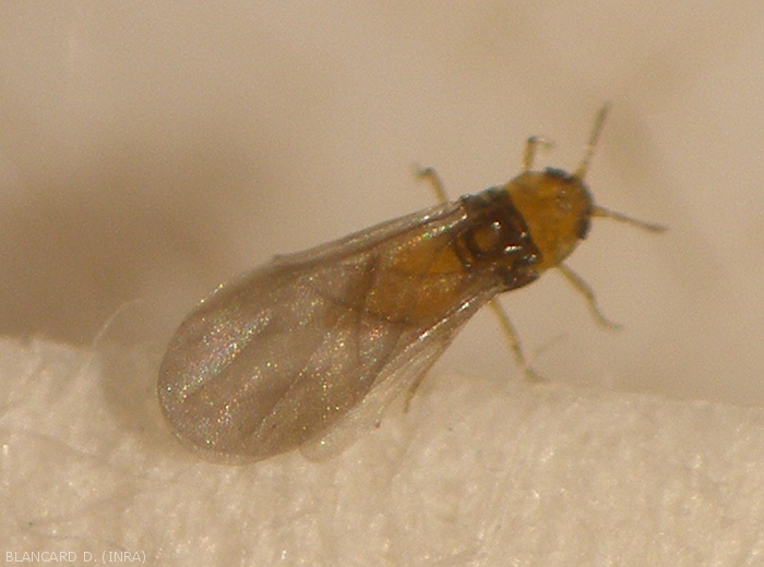 Gli adulti alati assomigliano a piccole cicale. Hanno un corpo allungato con un torace nero, il resto dell'insetto è rossastro. Il loro corpo misura tra 1 e 1,5 mm, senza contare le ali che superano largamente questa dimensione. Questa è la forma di sciamatura della specie.