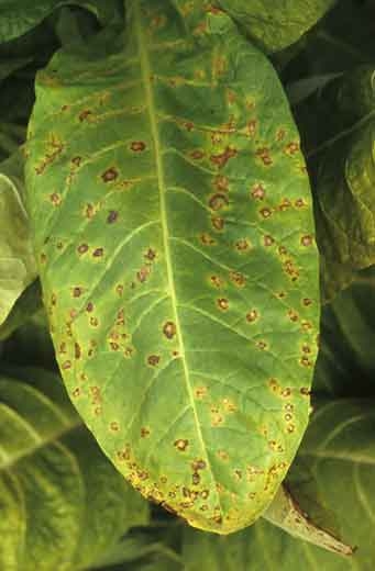 Outros dois vírus, raramente observados no tabaco, também causam manchas necrosas: o tobacco streak virus (TSV) e o vírus da necrose do tabaco (TNV). Para obter mais informações sobre esses vírus, recomendamos que você consulte a ficha técnica de outros vírus parasitas do tabaco.