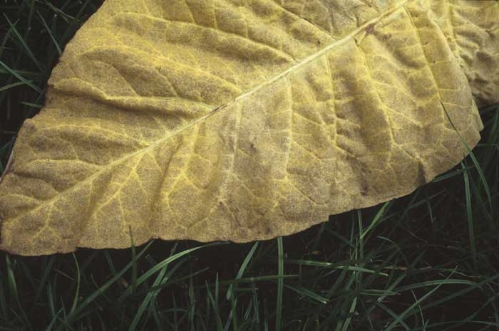 - Em contraste, a falta de nitrogênio irá gerar, assim como um baixo pH do solo ou doenças transmitidas pelo solo, folhas grossas, textura lisa e cor de chumbo fosco ("cinza de tabaco", figura 1);
