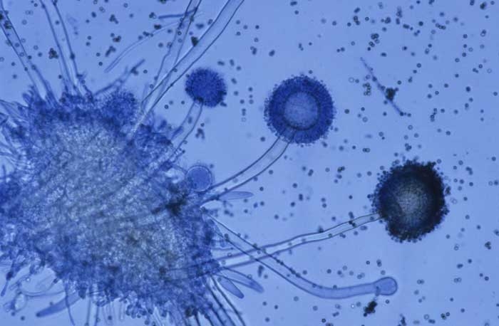 - Várias espécies de Aspergillus (figura 2), como Aspergillus fumigatus Fresen. (1863), Aspergillus flavus Link (1809), Aspergillus niger var. tieghi Níger. (1867), Aspergillus repens (Corda) Sacc. (1882), Aspergillus ruber Thom e Church (1926), Aspergillus ochraceus G. Wilh. (1877), Aspergillus versicolor (Vuill.) Tirab. (1908) e Eurotium herbariorum (FH Wigg.) Link (1809) (anteriormente Aspergillus glaucus) (figura 3);
