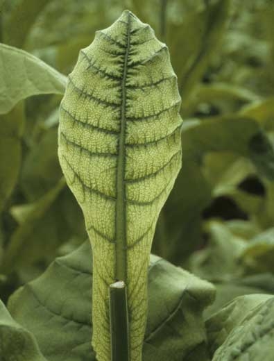 A origem desta doença não parasitária é incomum. Pode ser produzido pelos efeitos de uma bactéria não patogênica comumente encontrada no solo: Bacillus cereus Frankland & Frankland. Ele secreta uma toxina e possivelmente outros produtos que são difundidos perto das raízes e absorvidos pelo tabaco. O metabolismo de nitrogênio e proteína das plantas é perturbado, o aumento do teor de isoleucina livre e de outros aminoácidos é frequentemente observado. Deve-se notar que sintomas semelhantes foram observados nas seguintes situações: após toxicidades para tálio, manganês, chumbo ... ou nas plantas submetidas a metabólitos de Aspergillus wentii Whermer e Macrophomina phaseolina. Note-se que sintomas semelhantes foram relatados em tomate, e outras Solanaceae.