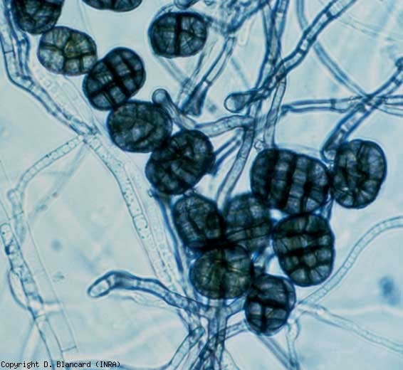 Os conídios desses patógenos oportunistas germinam nos frutos e entram diretamente através da cutícula ou através dos estômatos, lenticelas e várias feridas (depressões, microfissuras e rachaduras, perfurações, lesões resultantes de "queimaduras" ou no frio, microlesões do cutícula… O seu micélio invade os tecidos e não demora a produzir conidióforos e conídios (figuras 1 e 2) que serão dispersos pelo vento e correntes de ar, e por vezes salpicos de água. frutos doentes e frutos sadios, tanto no campo como durante o armazenamento. Observe que ascósporos (figura 3) podem ser formados dentro dos peritécios presentes em frutos podres. Esses esporos são provenientes da reprodução sexuada em Pleospora spp., cujo anamorfo corresponde a Stemphylium spp ..