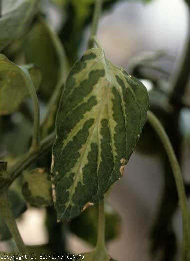 - divers virus responsables de mosaïques et de symptômes assimilés : Cucumber mosaic virus (CMV), Eggplant mottled dwarf virus (EMDV), Pepino mosaic virus (PepMV), Tobacco mosaic virus (TMV), Tomato mosaic virus (ToMV), Tomato infectious chlorosis virus (TICV), Pepino mosaic virus (PepMV), Potato yellow dwarf virus (PYDV), Tobacco mosaic virus (TMV), Tomato chlorosis virus (ToCV), Tomato infectious chlorosis virus (TICV), Eggplant mottled dwarf virus (EMDV), Tomato yellow leaf curl virus (TYLCV) ;