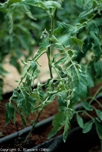 La présence de très nombreuses petites verrues humides, des intumescences (oedema) localisées le long des nervures de la face inférieure du limbe, entraîne dans certaines situations le recroquevillement, voire l'enroulement des folioles surtout sur la partie basse des plantes (figures 1 et 2).