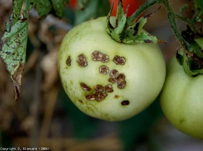 Comme vous avez pu le constater, ces bactéries provoquent des symptômes foliaires à peu près identiques sur tous les organes aériens de la tomate, excepté sur les fruits. Nous vous suggérons donc, lorsque vous êtes confronté à des taches brunes sur folioles, d'observer très attentivement les fruits.