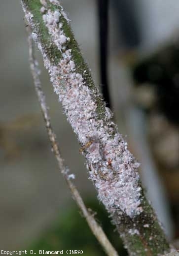 Cochonilhas ( cochonilhas ) são insetos sugadores pertencentes à ordem Hemiptera e à superfamília Coccoidea. O tomateiro é especialmente acometido por algumas cochonilhas pertencentes à família Pseudococcidae. As cochonilhas dessa família não possuem escudo córneo (uma espécie de carapaça), e o corpo geralmente é coberto por uma secreção branca e farinhenta. Eles também têm filamentos cerosos laterais claramente visíveis na periferia do corpo, e às vezes pode ser notada uma secreção algodonosa contendo os ovos no final do abdômen. Estamos interessados aqui principalmente em Pseudococcus viburni (Signoret) (sin. Pseudococcus affinis [Maskell]) que foi introduzido na Holanda no início de 1990, e começou a ser observado na França a partir de 1997. Esta cochonilha é encontrada agora em uma número de abrigos espalhados por várias regiões de produção francesas.