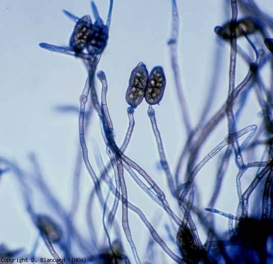 Os conídios desses fungos germinam nos folíolos e penetram diretamente pela cutícula ou por diversas feridas . Seu micélio então invade rapidamente os tecidos, e as manchas já são visíveis 5 dias após as primeiras contaminações.
