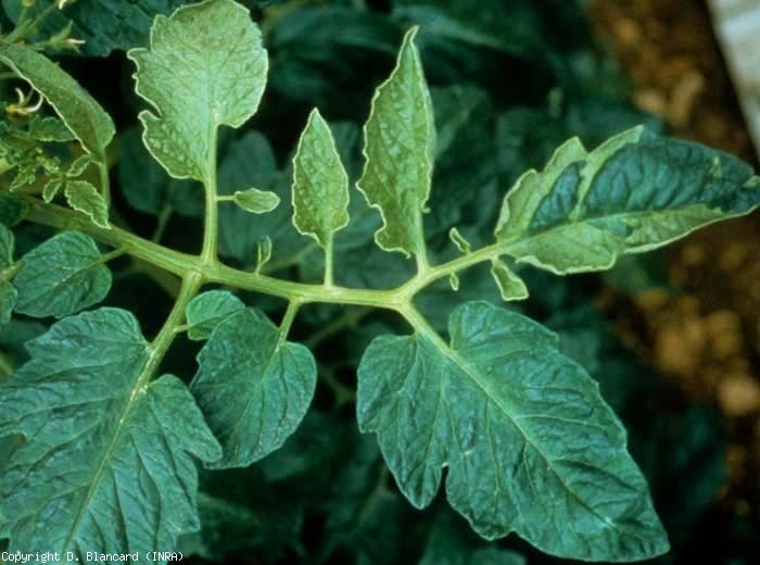 Esta doença não parasitária, também chamada de " prateamento ", "quimera", "prateamento da cabeça" quando afeta as folhas do ápice do tomateiro, é relativamente bem conhecida pelos cultivadores de estufa (figuras 1 e 2).