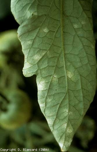 Nenhum sintoma é visível nos outros órgãos do tomateiro, incluindo caule e pecíolos , bem como nos frutos .