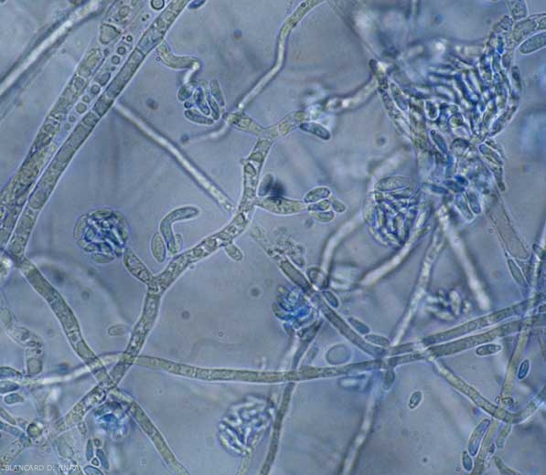 Este fungo produz clamidósporos , microconídios (figura 2), até mesmo macroconídios (figura 3), nos vasos e nos tecidos colonizados e alterados. Pode se disseminar a distâncias maiores por meio de sementes e plantas contaminadas, por substratos, água, por máquinas agrícolas que circulam de um canteiro para outro e cujos pneus estão carregados com partículas de solo e restos vegetais. Poeiras do solo contendo clamidósporos são facilmente espalhadas por correntes de ar, bem como por respingos de água.