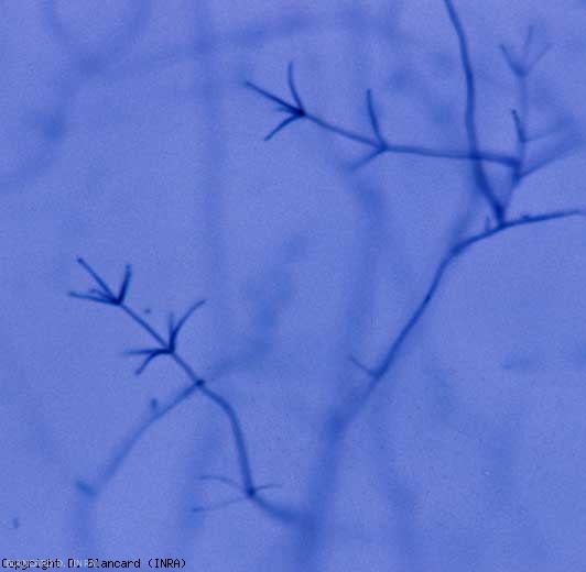 A contaminação ocorre pela penetração direta do micélio dos microescleródios na raiz ou por várias lesões radiculares . Além disso, podem ser facilitados por ataques de nematóides das galhas e Pratylenchus spp. Uma vez introduzido, o fungo atinge o sistema vascular das plantas, que coloniza gradativamente. Estes reagem a esta invasão vascular formando gomas ou tilos que impedem a sua progressão. Esses mecanismos de defesa, associados à colonização e obstrução dos vasos pelo micélio, contribuem para o murchamento das plantas. Observe que V. dahliae produz microescleródios nos tecidos (em temperaturas entre 10 e 20°C) e frágeis conidióforos verticilados formando conídios ovoides.