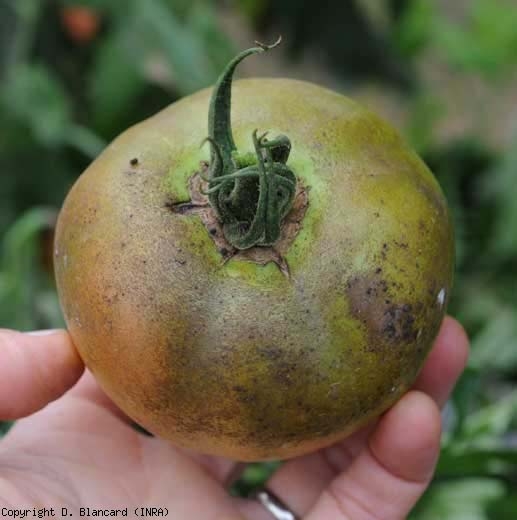 Les nombreuses piqûres nutritionnelles d'Aculops lycopersici, l'agent de l'acariose bronzée, sont à l'origine de la coloration imparfaite des fruits. Ceux-ci peuvent être plus petits et présenter des plages superficiellement subérisées, de couleur brunâtre, et plus ou moins étendues (figure 2) (voir le chapitre Taches sur feuilles).
