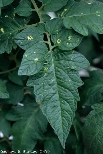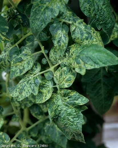 A expressão dos sintomas parece fortemente influenciada pelas condições climáticas, em particular pela temperatura e luminosidade dos abrigos. Assim, os sintomas são facilmente observados do outono à primavera e tendem a desaparecer em períodos quentes e claros. A doença se expressa de forma diferente dependendo do estágio de desenvolvimento da planta e da cultivar. Observe que pode passar completamente despercebido, apesar da infecção de muitas plantas, ou aparecer em uma camada de folhas e frutos.