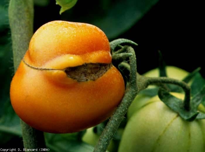 * Um sintoma semelhante ao zíper e chamado de " trilha de aranha " é relatado principalmente nos Estados Unidos. De causa desconhecida, este problema é caracterizado por um maior número de cicatrizes negras necróticas, localizadas principalmente na zona peduncular dos frutos. Estes não estão de forma alguma relacionados com a cicatriz peduncular, mas estão dispostos radialmente em relação a esta última. Estrias verde-escuras a amarelas, dependendo do estágio de maturidade do fruto, "irradiam" da cicatriz do caule. As variedades de tomate não têm todas a mesma suscetibilidade a esta doença, cultivares de frutos grandes seriam mais sensíveis.