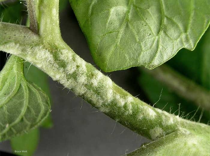 - controlar adequadamente a irrigação, especialmente em períodos nublados e úmidos. Será interrompida no final da tarde, antes do anoitecer, para evitar que o solo ou substrato fique muito úmido.