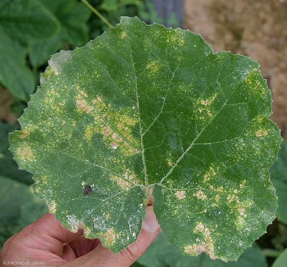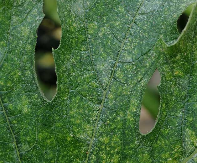 The damage of Tetranychus urticae on zucchini and squash is manifested by the appearance of tiny chlorotic spots more or less scattered on the leaf blade (Figures 1 to 4). The latter gradually turns yellow and takes on a dull color .