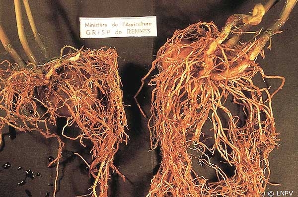 During the growing period, the presence of potato cyst nematodes in a field may be noticeable by the presence of patches (roughly circular foci) of poor vegetation (photo 1). Yield loss is rather proportional to the level of soil infestation and in sandy soil, it can reach 50%. However, very frequently adequate fertilizing regimes may often conceal the problem.