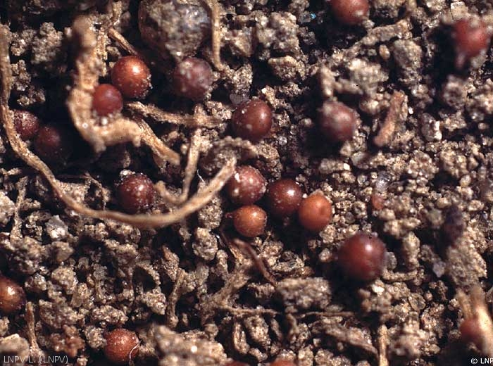 Fine examination of the root system of lifted plants at tuber formation (photo 2) may reveal the presence of white or yellow globes, i.e. females (photos 3 and 4) and brown cysts (photo 5).