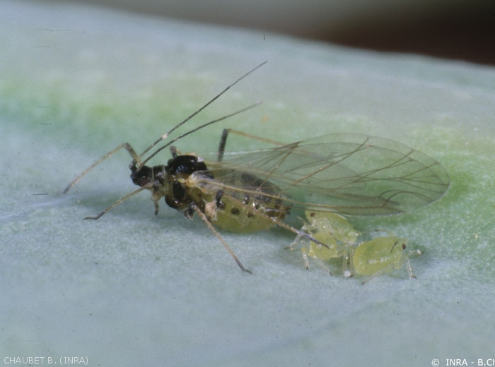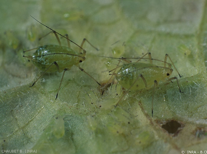The itinerant aphid species, which can visit potato fields with high alate populations, can have a significant effect in the dissemination of non-persistent viruses such as PVY or PVA. However they are not involved in the transmission (persistent mode) of PLRV, because aphids need to remain for quite a long time in the crop before they become viruliferous.