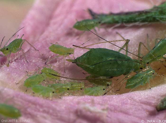 Aphids comprise a large number of species. Some of them multiply on the potato and can form colonies, whilst itinerant aphids only visit the crop occasionally during flights.