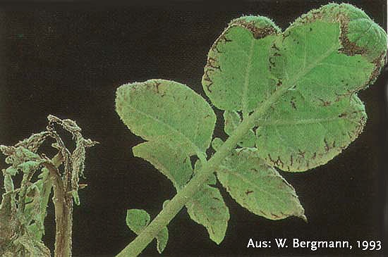 Symptoms of deficiency: the young leaves and the leaf tips become chlorotic, smaller and slightly curled (photo 1). In the case of severe calcium deficiency, plants may be stunted. As calcium is not very mobile in the plant, symptoms are typically located on the apical parts of the leaves, stems and sprouts. Necrotic and black tips on the sprouts (photo 2) as well as tuber internal rust spot are sometimes related to a lack of calcium availability.