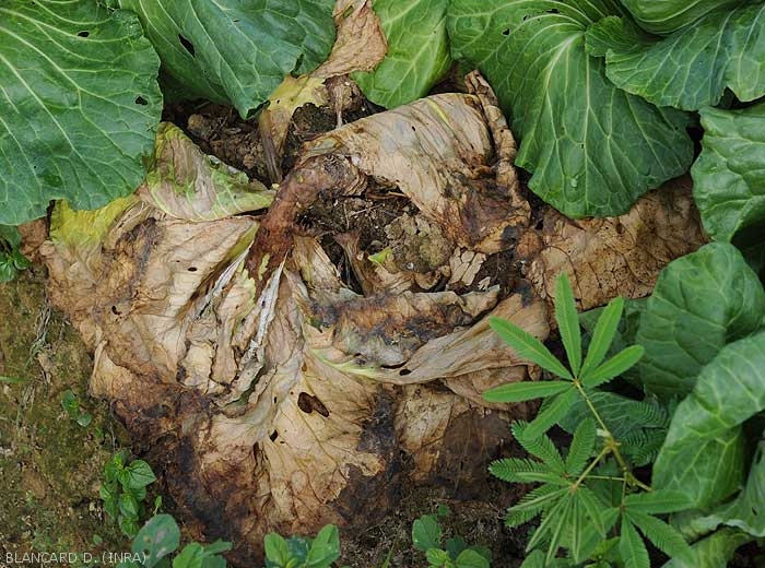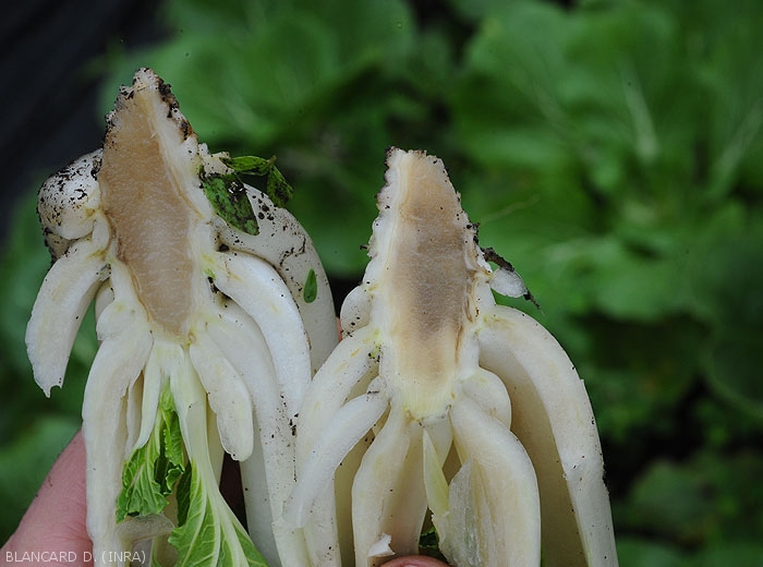 Brown to blackish rot of the lower part of cabbages (figures 2 and 3.
