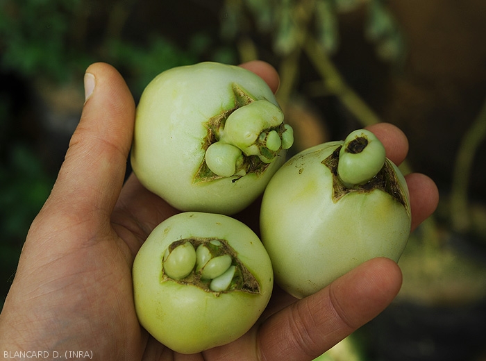- fruits: oily lesions, more or less raised and/or corky, bursting (figure 13).