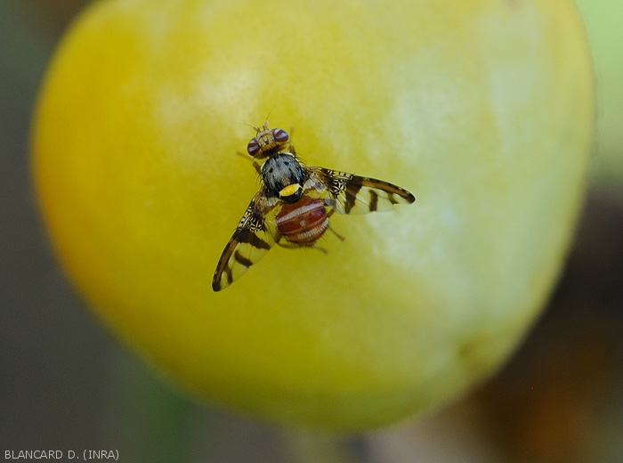 Very damaging insect on fruits belonging to the Tephritidae family, the Dacinae subfamily and the Ceratidini tribe.