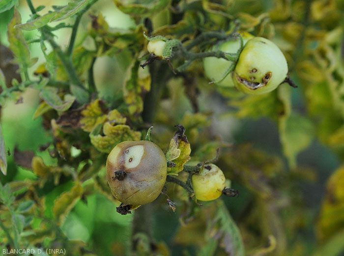 Presence of more or less punctiform and discolored lesions corresponding to the bites of adults on the affected fruits; they are generally clearly visible (figures 1 to 3).