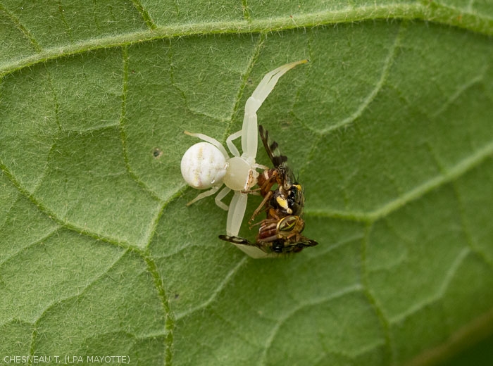 Certain natural auxiliaries (figures 11 and 12) can contribute to limiting the populations of N. cyanescens on reservoir plants or in untreated plots. A native larval parasitoid species, Psyttalia insignipennis (Granger) (= Austroopius ) was thus observed in Mayotte, with a reduced rate of parasitism (8%).