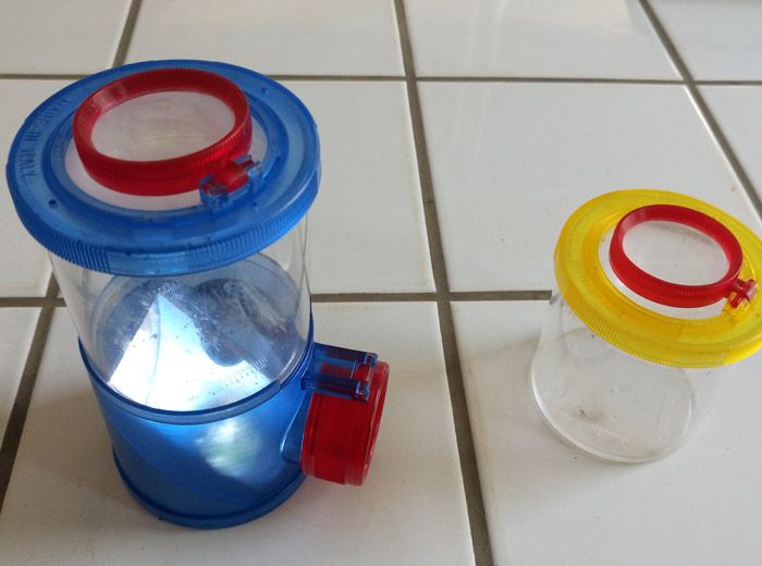 2- As soon as an organism is visible, it would be good to catch it gently to better observe it, and/or to take a picture of it. The ideal being to suck it up with an insect vacuum cleaner (made with a small container, fine pipes, gauze and you're done ...), or for soil organisms that are not very fast , catch them by hand and put them in a transparent box, and preferably a magnifying box to better see their whole body.