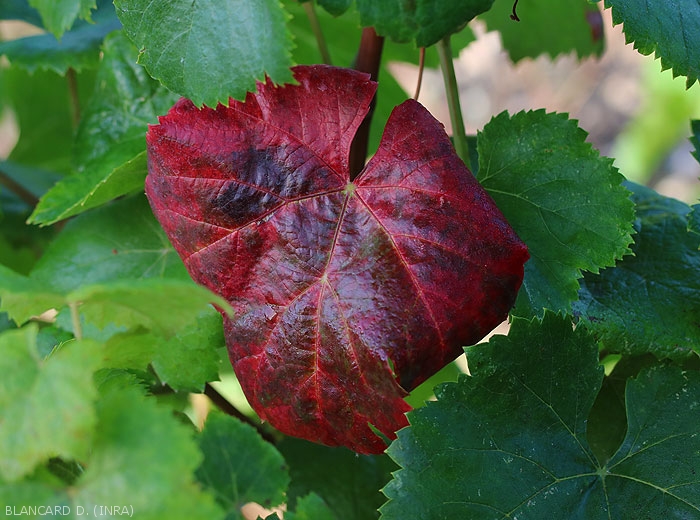The damage is not serious on adult vines but is quite spectacular in the fall (photos). Note that when young twigs are affected, they can dry out completely, especially on young vines.
