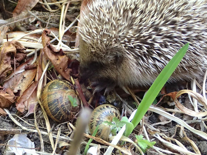Among small animals, the common hedgehog <em> Erinaceus europaeus </em> L 1758, is a remarkable predator of snails (photo). However, this species protected in France, which mainly nests in hedges and bushes, tends to leave the agricultural environment and take refuge in urban areas. We can promote its installation on the plots by arranging nesting boxes (piles of wood).
