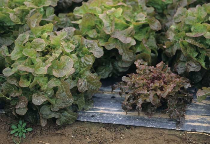 Si l'on s'intéresse à d'autres facteurs édaphiques, il a été rapporté que, dans certains sols acides, au pH inférieur à 4, les salades présentaient aussi un développement assez lent (ceci en plus d'une chlorose foliaire). Des symptômes comparables sont parfois constatés sur des salades réparties en foyers, dans certaines zones de parcelles où des rétentions d'eau ont lieu localement.