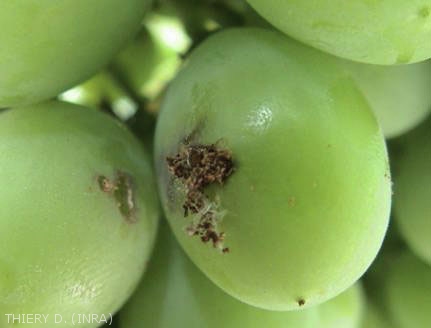 D'autres insectes ravageurs secondaires peuvent profiter des blessures de la baie pour s'installer. C'est le cas des drosophiles qui pondent dans les blessures et initient l'installation de la pourriture acide.