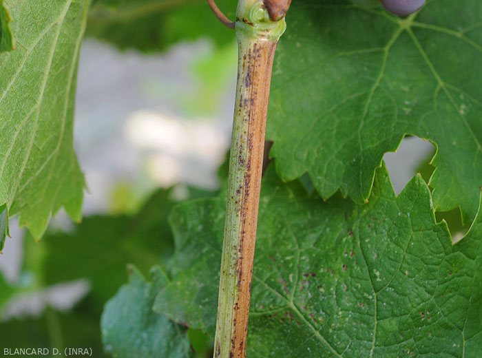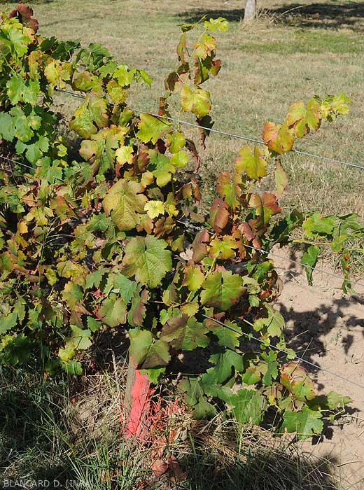 Rootstocks (cultivated in mother vines or wild regrowth) show few symptoms although they can be carriers of phytoplasmas.