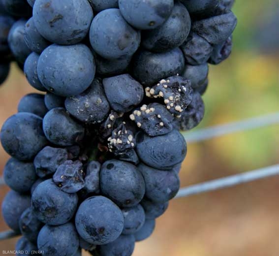 - The grape berries gradually darken and shrivel, eventually forming mummies when completely dried out.