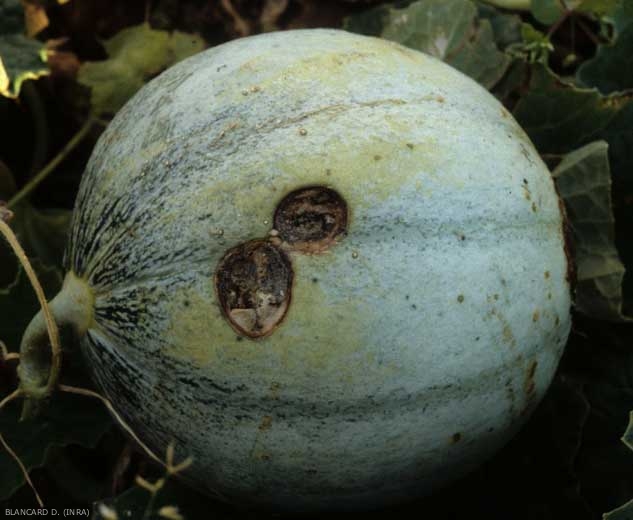 The stalk scar, and the stalk area are also vulnerable, but to a lesser degree. The wound produced when picking a melon, or the more or less marked natural bursts forming when the fruits are ripe, also allow contamination.