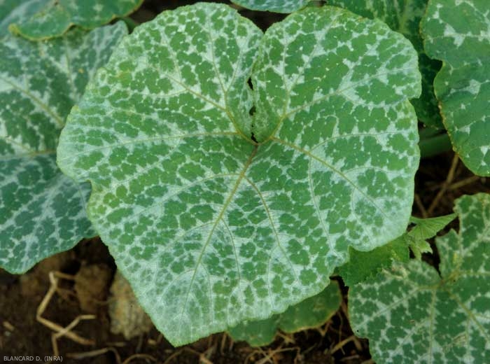 The 3 main species Cucurbita cultivated can show silvering symptoms: C. pepo , C. maxima and C. moschata , but also wild species like C. ecuadorensis and C. martinezii . Nevertheless, differences in sensitivity to the silvering have been observed in species Cucurbita . Cucumber, melon and watermelon are not affected.