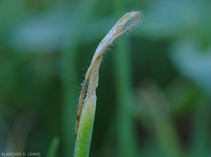 • amplification of lesions and drying out occurring at the end of the leaves (figures 1 and 2) or elsewhere on the leaf blade (figure 3).