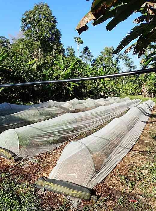 In what conditions ? The protection of crops by a physical barrier must be considered, in particular so as not to prevent the pollination of flowers (cucurbits, fruit trees). It must be removable, in particular to facilitate its removal in the event of a warning of strong winds. For anti-insect nets, several types of weaving exist: “wrap knitting” weaving and mesh, Ultravent or Fil-Bio nets from Texinnov®, multifilament nets from Diatex®.