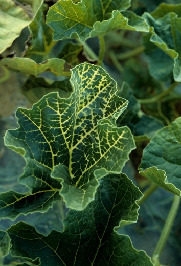 - diffuse yellowing of the leaf blade between the veins (figure 9);