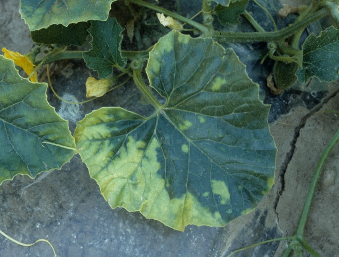 The varietal sensitivity differences may occur in the melon. Thus, if you grow several varieties at the same time, you may be able to observe a sectoral distribution of diseased plants and healthy plants corresponding to different varieties.