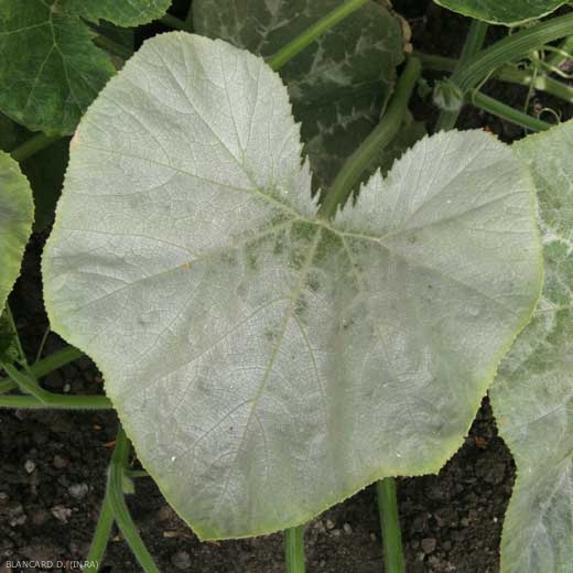 The 3 main species Cucurbita cultivated can show silvering symptoms: C. pepo , C. maxima and C. moschata , but also wild species like C. ecuadorensis and C. martinezii . Nevertheless, differences in sensitivity to the silvering have been observed in species Cucurbita . Cucumber, melon and watermelon are not affected.