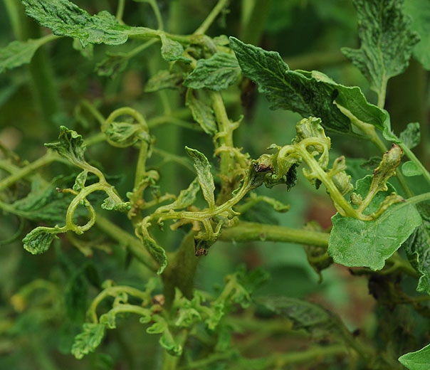 Los pinchazos de P. latus son la causa de deformaciones foliares bastante marcadas y espectaculares, siendo especialmente las yemas y las hojas jóvenes las que se deforman. Tenga en cuenta que estos síntomas recuerdan a los causados por herbicidas de tipo hormonal en los tomates y, en menor grado, a los de ciertas enfermedades virales.