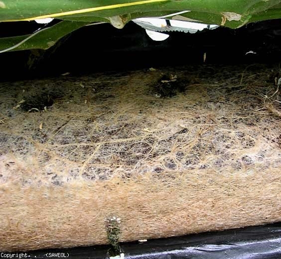 Las plantas afectadas tienen una proliferación de raíces bastante lineal en y en la superficie de cubos y panes de lana de roca (foto 514), lo que conduce a un aumento en el crecimiento vegetativo de los tomates a expensas de la fructación. Ten en cuenta que el tamaño de la fruta se puede reducir. Además, la densidad de las raíces las hace mucho más sensibles a los ataques de los hongos presentes en los cultivos sobre el suelo, especialmente a los cromáticos (Pythium spp., Phytophthora spp.).