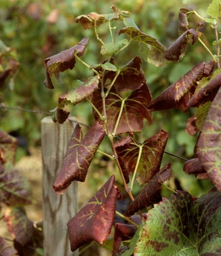 La más grave es la potencial transmisión de virus por picadura de determinadas especies como Parthenolecanium corni, Pulvinaria vitis , Heliococcus bohemicus y Phenacoccus aceris , siendo las partículas virales inoculadas por estos insectos. Los más dañinos para la vid son los virus del enrollamiento de las hojas, virus asociado al enrollamiento de las hojas de la vid (GLRaV) (Figuras 1 y 2).