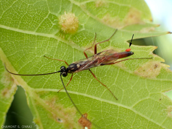 - en los idiobiontes , el desarrollo comienza poco después de la puesta, tan pronto como emerge el huevo. La aparición del hospedador tiene lugar en la etapa en la que tuvo lugar el desove. Este tipo de desarrollo se encuentra muy a menudo en ectoparasitoides, cuyo huésped se encuentra dentro del tejido vegetal. Luego, las hembras depositan sus huevos en huéspedes que han completado su desarrollo larvario o en estado de ninfa. En este caso también se incluyen los parásitos oófagos, pero generalmente son endoparasitoides;