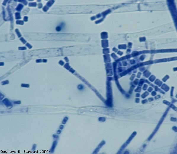 Produce lesiones húmedas y grasas que aparecen a nivel de heridas o cicatriz peduncular de los frutos. Estas lesiones evolucionan rápidamente sobre frutos maduros, cuya epidermis acaba por partirse, provocando que el jugo fluya. Un moco blanquecino y denso a veces cubre los tejidos localmente (figura 1); corresponde al desarrollo de colonias de G. candidum . Dentro de este último, las artrosporas de cadena portadora de micelio septadas que terminan desarticulándose son fácilmente observables al microscopio óptico (figura 2).