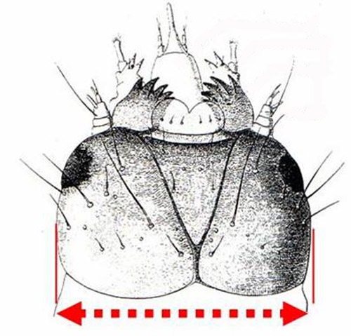 Cinq stades larvaires se déroulent avant la nymphose. Pour un même stade, la taille de la chenille peut varier en fonction de la quantité et de la qualité de la nourriture dont elle dispose. La capsule céphalique est cependant la partie du corps la plus constante. On mesure sa partie la plus large pour caractériser les stades larvaires (figure 3). Pour cela, il convient de disposer d'un système de mesure micrométrique associé à une loupe binoculaire par exemple.